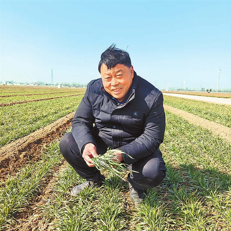2月18日上午,刚吃过早饭,滑县焕永种植农民专业合作社理事长杜焕永便径直走到麦田,随手拔起一棵麦苗,仔细地查看苗情,筹划新一年的打算。