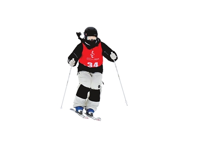 我省运动员郝丽赟在自由式滑雪公开组女子雪上技巧项目比赛中。本报记者 邓放 本报通讯员 雷乃益 摄