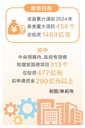 与此同时,针对重点项目融资难、融资贵的问题,淅川县实行重点项目“首席金融服务员”制度,多渠道争取资金支持,累计为重点项目和企业争取中长期贴息贷款超亿元。截至目前,该县累计谋划2024年各类重大项目454个,总投资1489亿元,其中中央预算内、政府专项债和增发国债项目313个,总投资477亿元,拟申请资金290亿元以上。