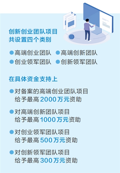 据介绍,创新创业团队项目共设置高端创业团队、高端创新团队、创业领军团队、创新领军团队四个类别。