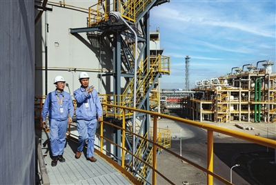 氢化学公司气化车间职工在备煤筒仓氮气炮平台巡检。梁超 摄