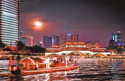 “夜游锦江”项目负责人杨苛介绍,该项目并非单个创意项目的堆叠,而是以“主题集市+沉浸式演绎+主题业态+游船”进行各码头消费场景配置,立足城市历史文化底蕴,创新天府文化表达。