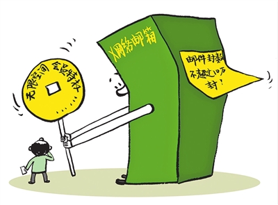 “无限空间”邮箱会员却被通知邮箱已满,仔细查看购买条款却发现“无限空间”也有限。针对网络会员充值服务有可能误导消费者的问题,商家应以显著的方式对格式条款进行提示;消费者也应提高识别能力,养成先了解后下单的谨慎消费习惯。 漫画/王铎