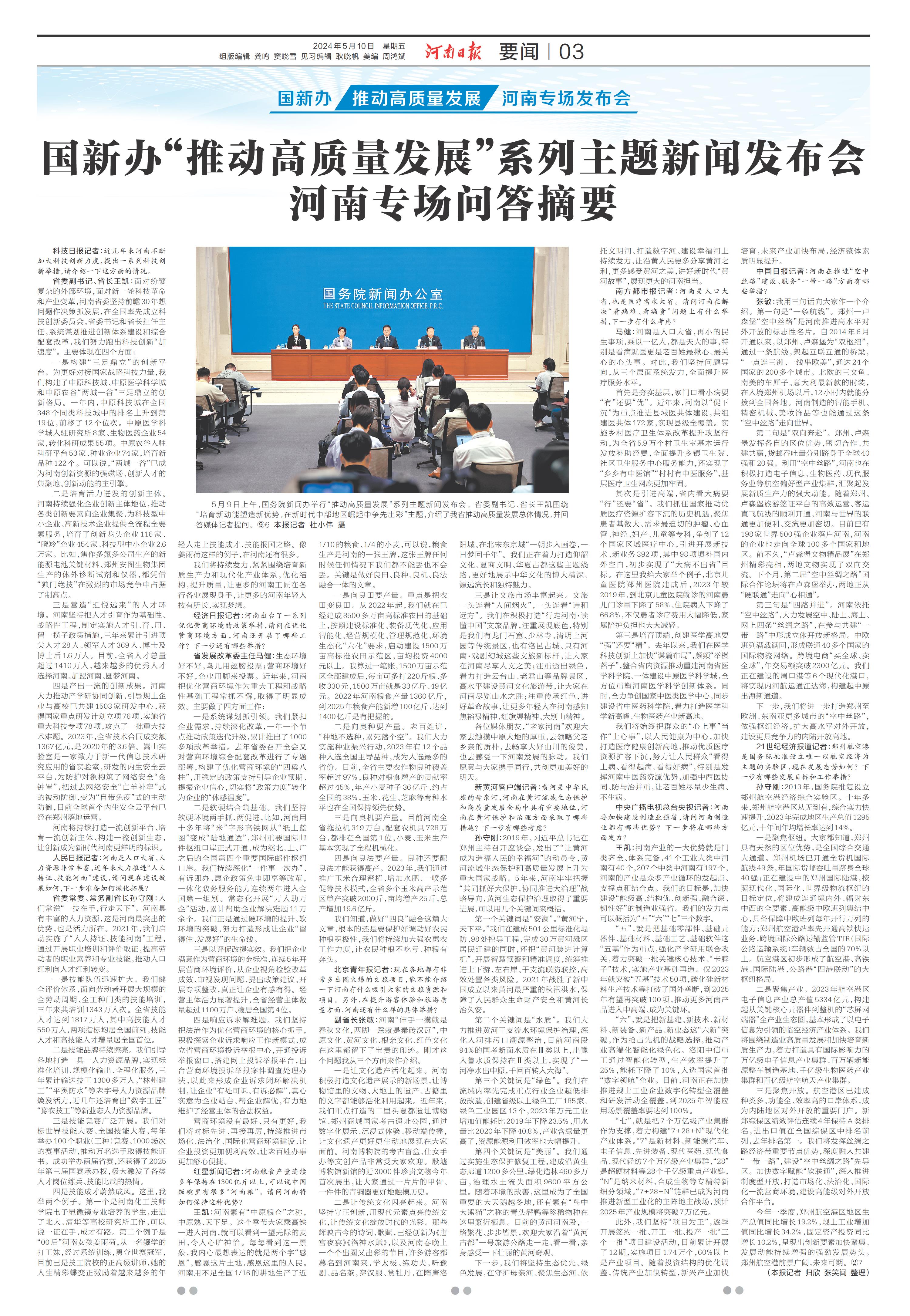 国新办“推动高质量发展”系列主题新闻发布会河南专场问答摘要(国新办推动高质量发展河南专场发布会)