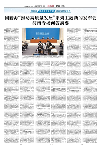 河南专场问答摘要(国新办推动高质量发展河南专场发布会)