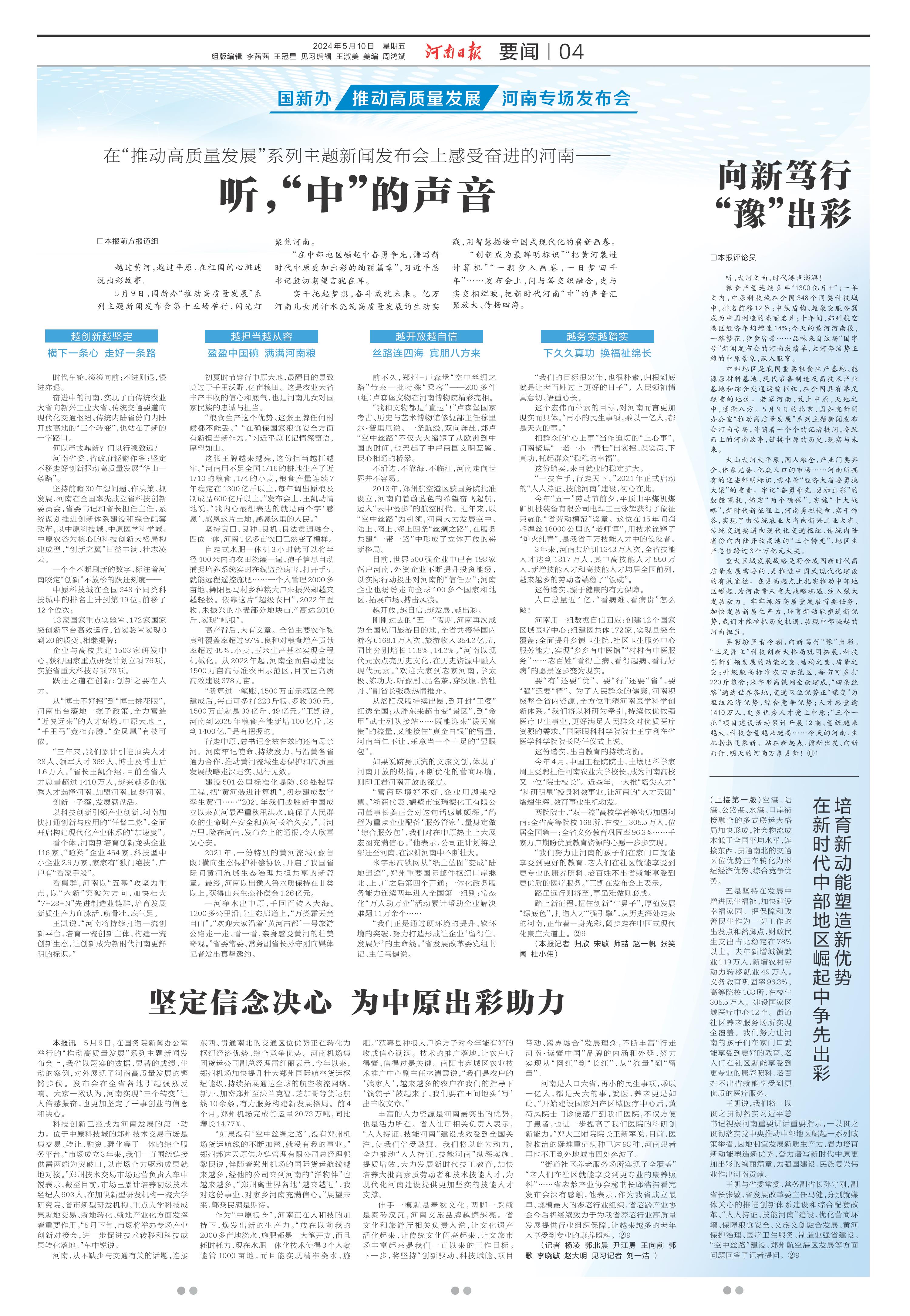 坚定信念决心 为中原出彩助力(国新办推动高质量发展河南专场发布会)