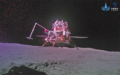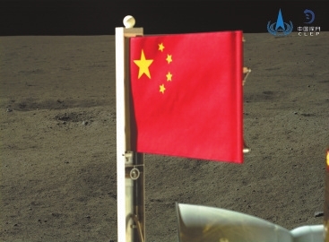 表取完成后,嫦娥六号着陆器携带的五星红旗在月球背面成功展开,这是我国首次在月球背面独立动态展示国旗。