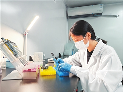 张潇慧在北京大学生命科学学院仪器中心协助北大师生做实验。 受访者供图