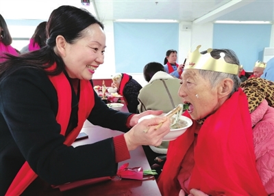 幸福养老服务中心为老人过生日。