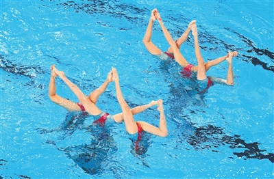 中国姑娘们在水中用腿摆成甲骨文“山”字,展现出艺术之美。新华社记者 夏一方 摄