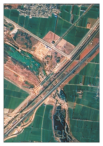 2014年12月25日,流经鹤壁市朝歌文化公园的淇河干涸见底,两岸植被稀疏。 (图片来源:高分湖北中心)