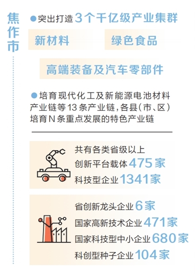 “3+13+N”产业链群的建设是核心,“3”即突出打造新材料、绿色食品、高端装备及汽车零部件3个千亿级产业集群;“13”即重点培育现代化工及新能源电池材料产业链、超硬材料产业链、铝基及钛锆合金新材料产业链、绿色建筑建材产业链、绿色食品产业链、装备制造产业链、新能源汽车及汽车零部件产业链、氢能及储能产业链、能源及新能源工业产业链、现代轻纺及皮革制造产业链、生物医药及原料药产业链、电子信息产业链、节能环保产业链13条重点产业链;“N”即各县(市、区)梳理自身产业基础及优势,结合全市重点产业链细分领域,培育N条重点发展的特色产业链。