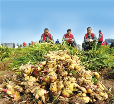 ④焦作市“三十工程”——丹东灌区续建配套与节水改造项目带动博爱县怀姜丰收。程全 摄