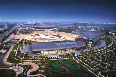 焦作市太极体育中心夜景。