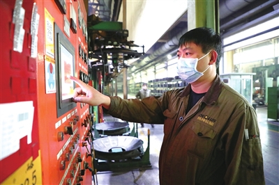 ②风神轮胎股份有限公司工人在操作机器。