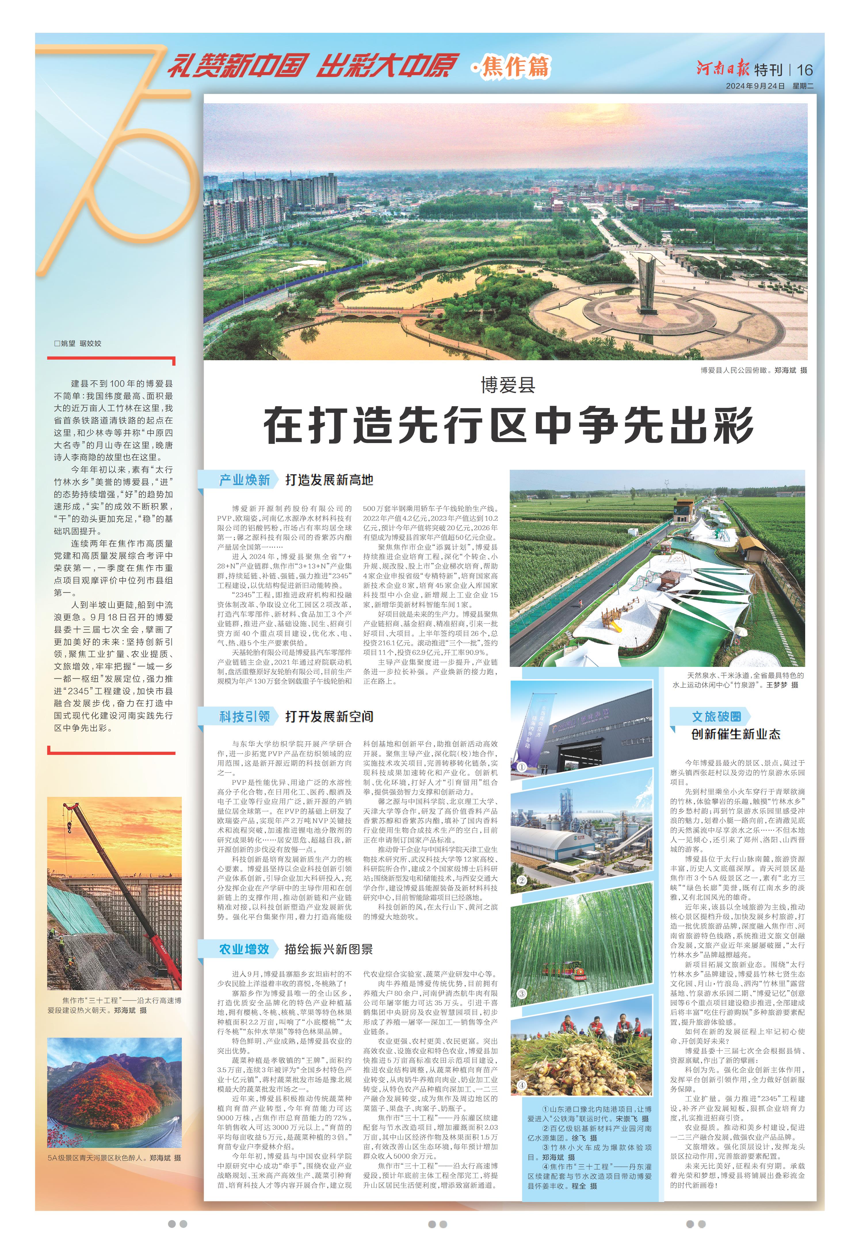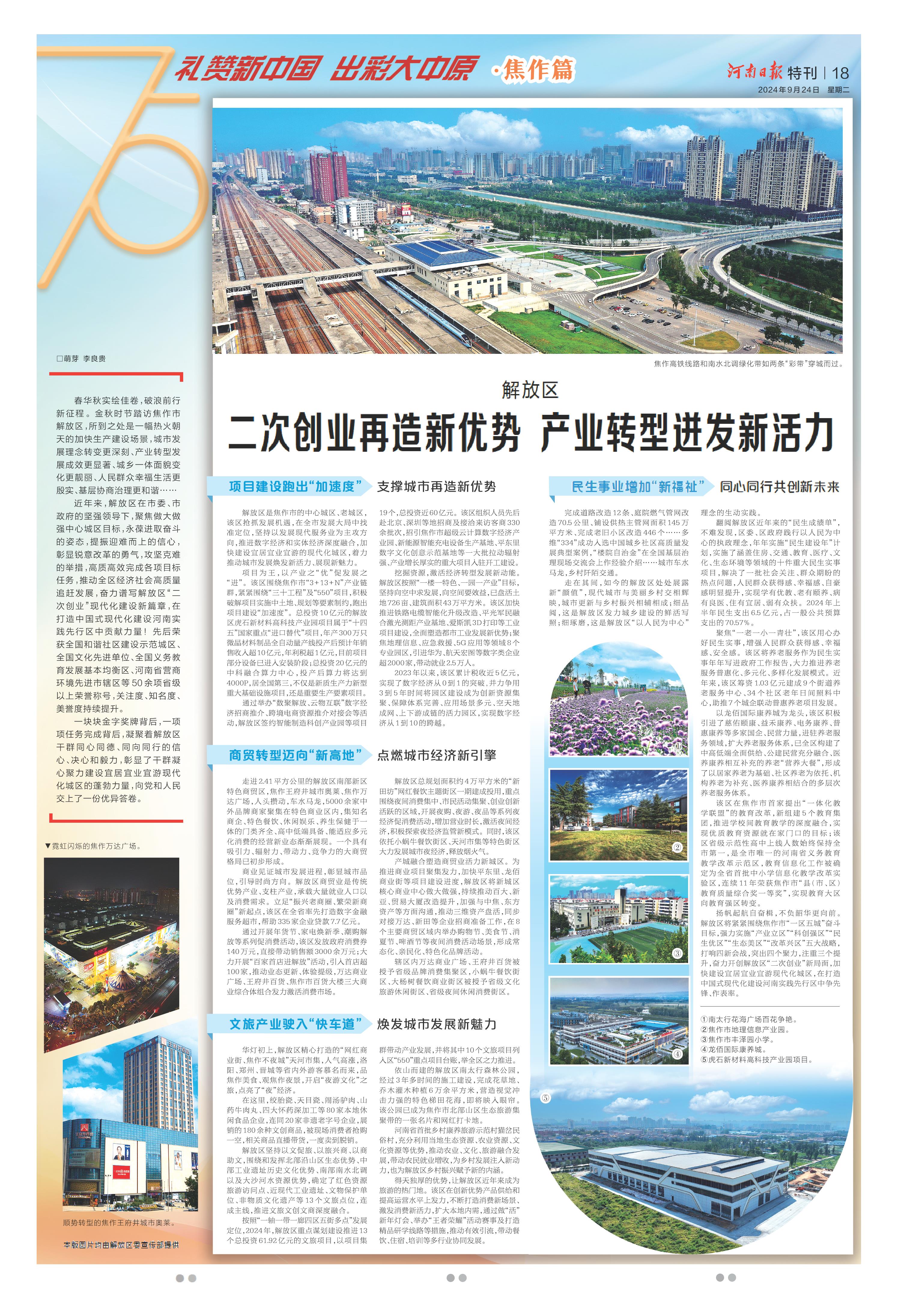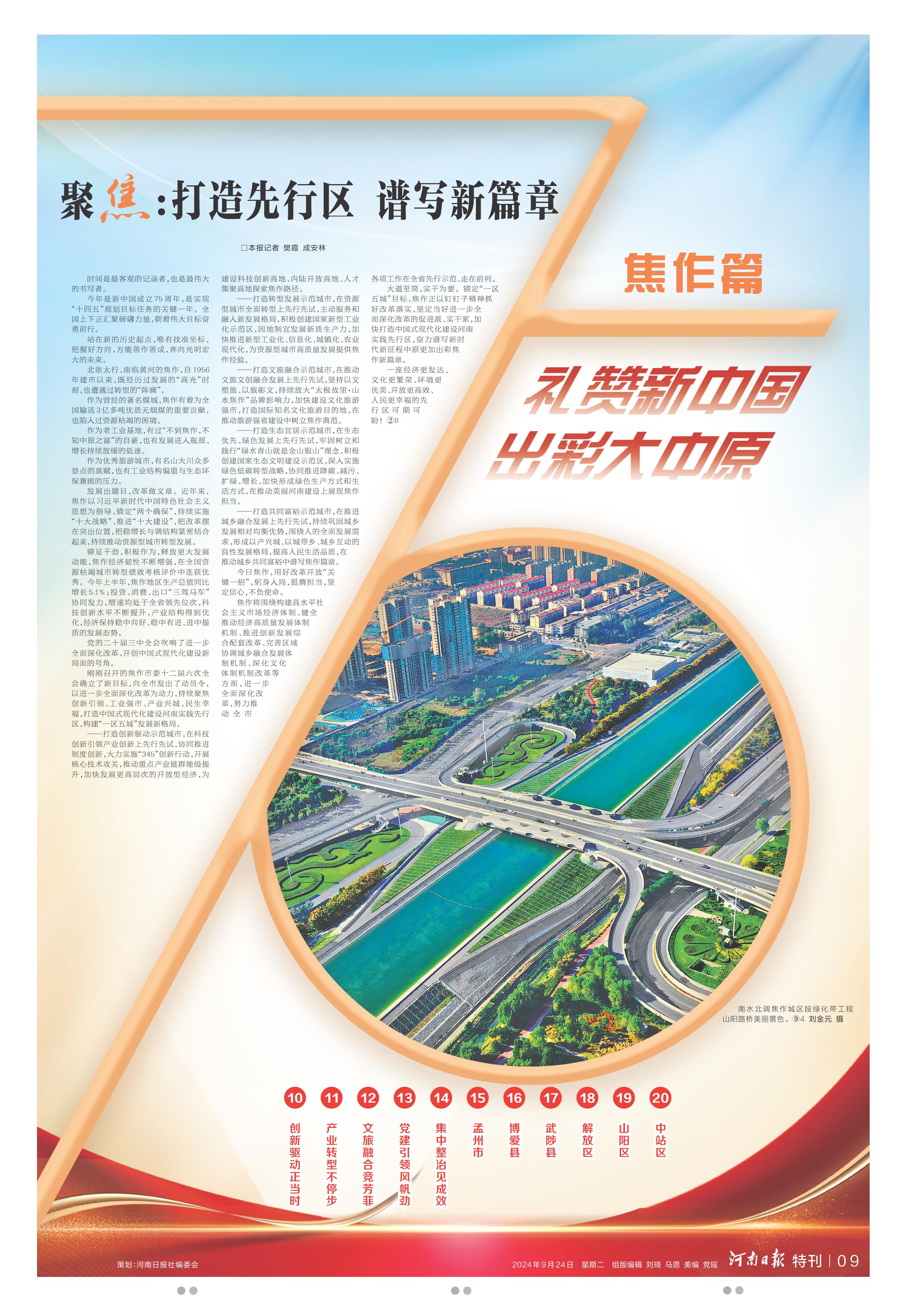 聚焦:打造先行区 谱写新篇章(礼赞新中国 出彩大中原·焦作篇)