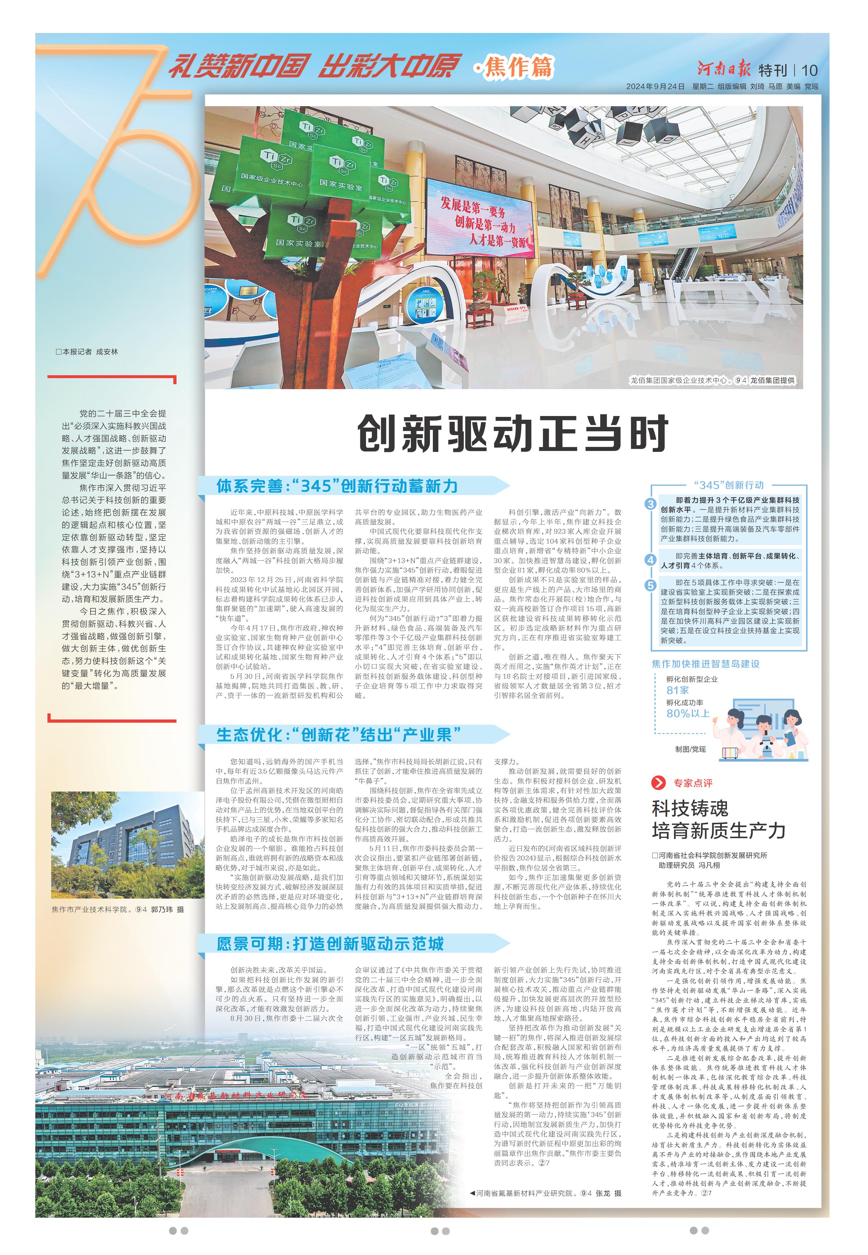 创新驱动正当时(礼赞新中国 出彩大中原·焦作篇)