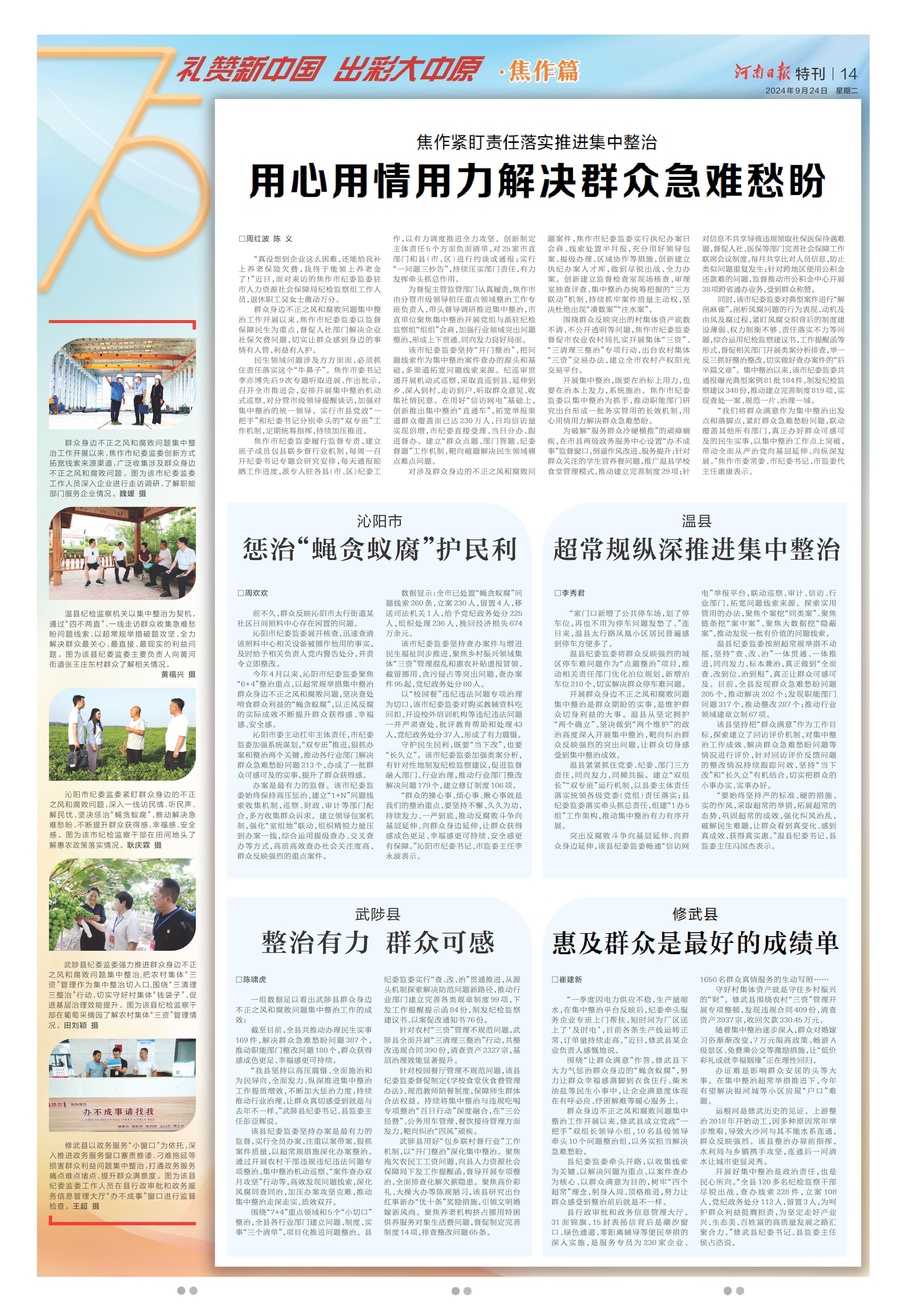 用心用情用力解决群众急难愁盼(礼赞新中国 出彩大中原·焦作篇)