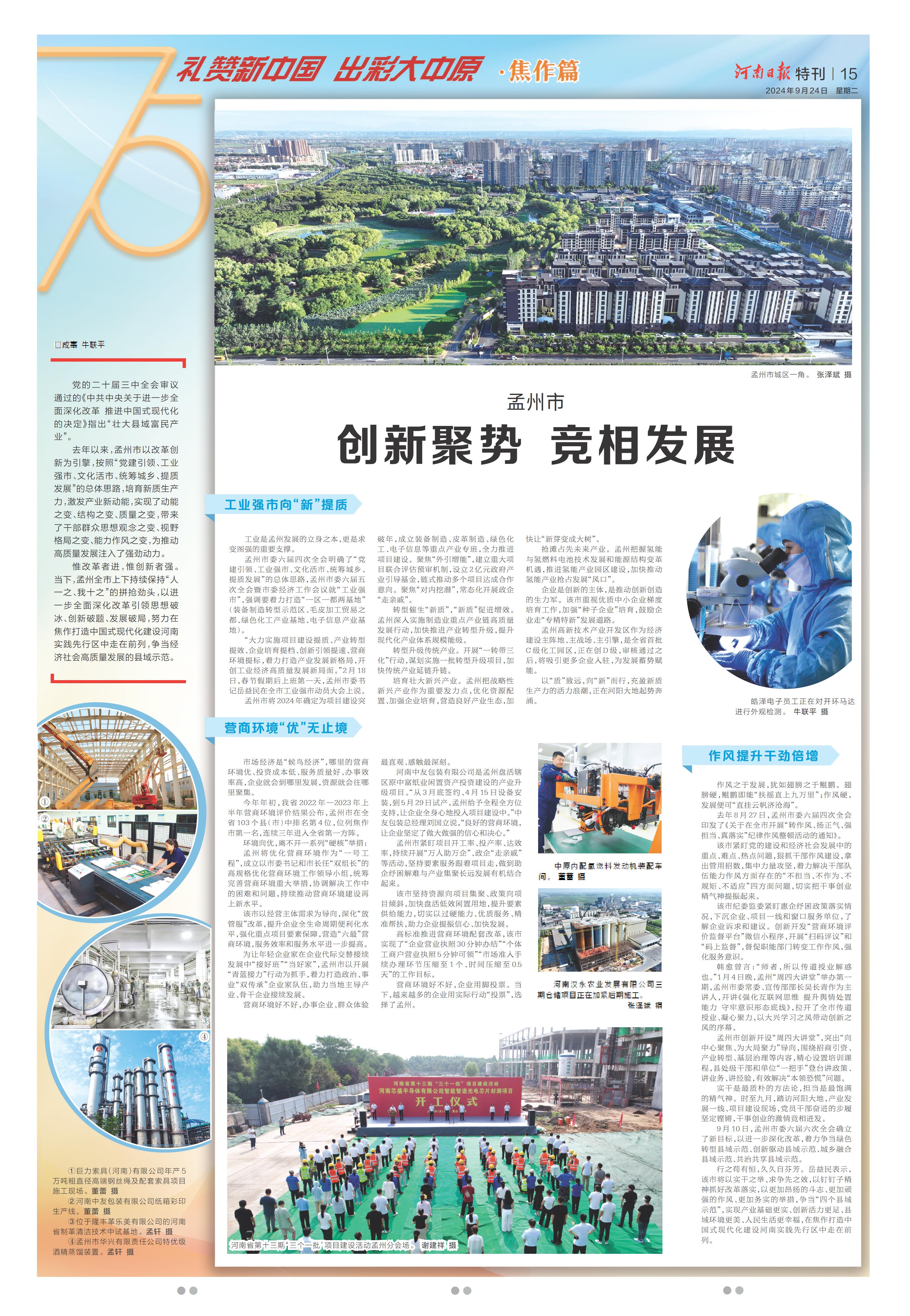 创新聚势 竞相发展(礼赞新中国 出彩大中原·焦作篇)