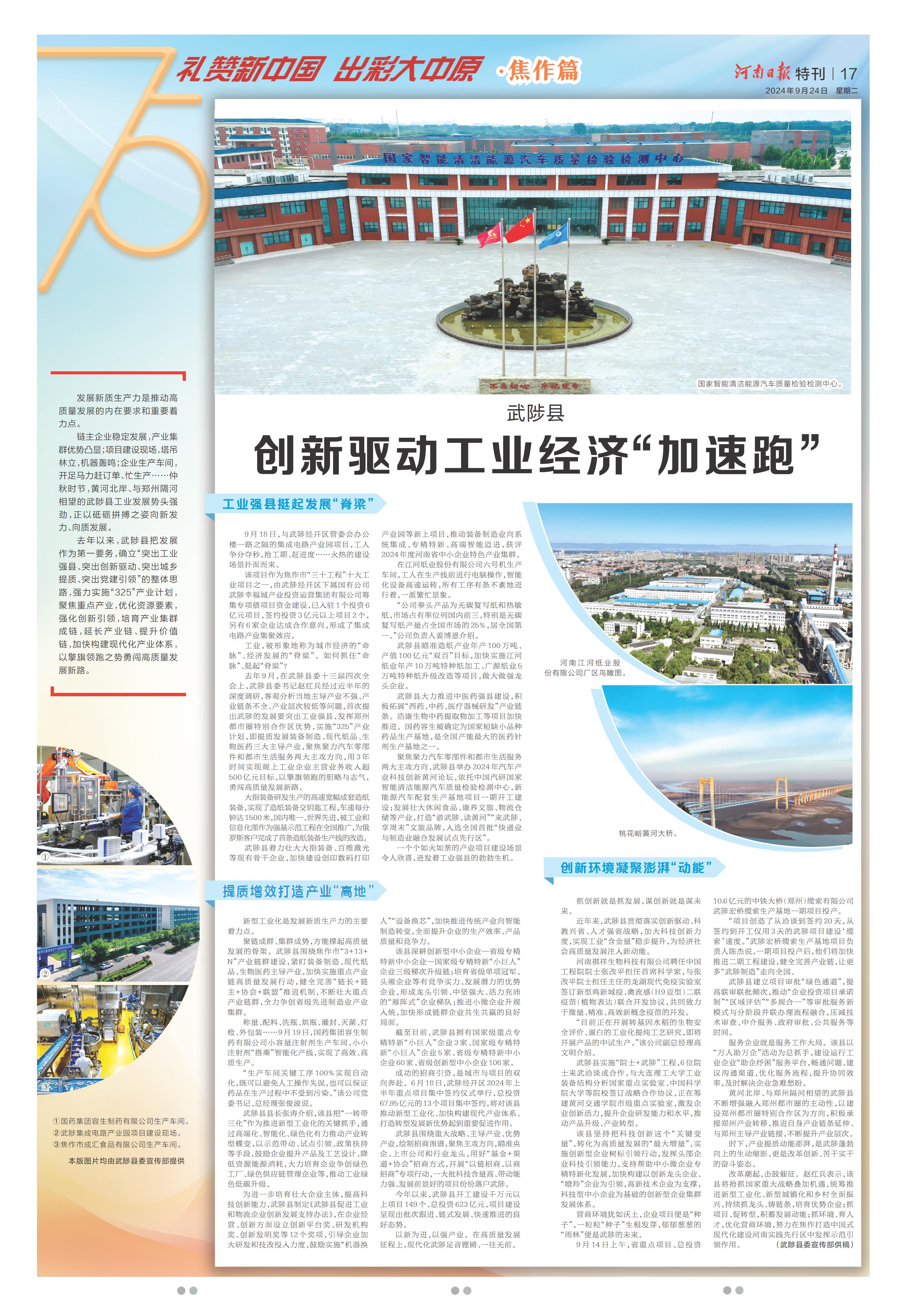 创新驱动工业经济“加速跑”(礼赞新中国 出彩大中原·焦作篇)