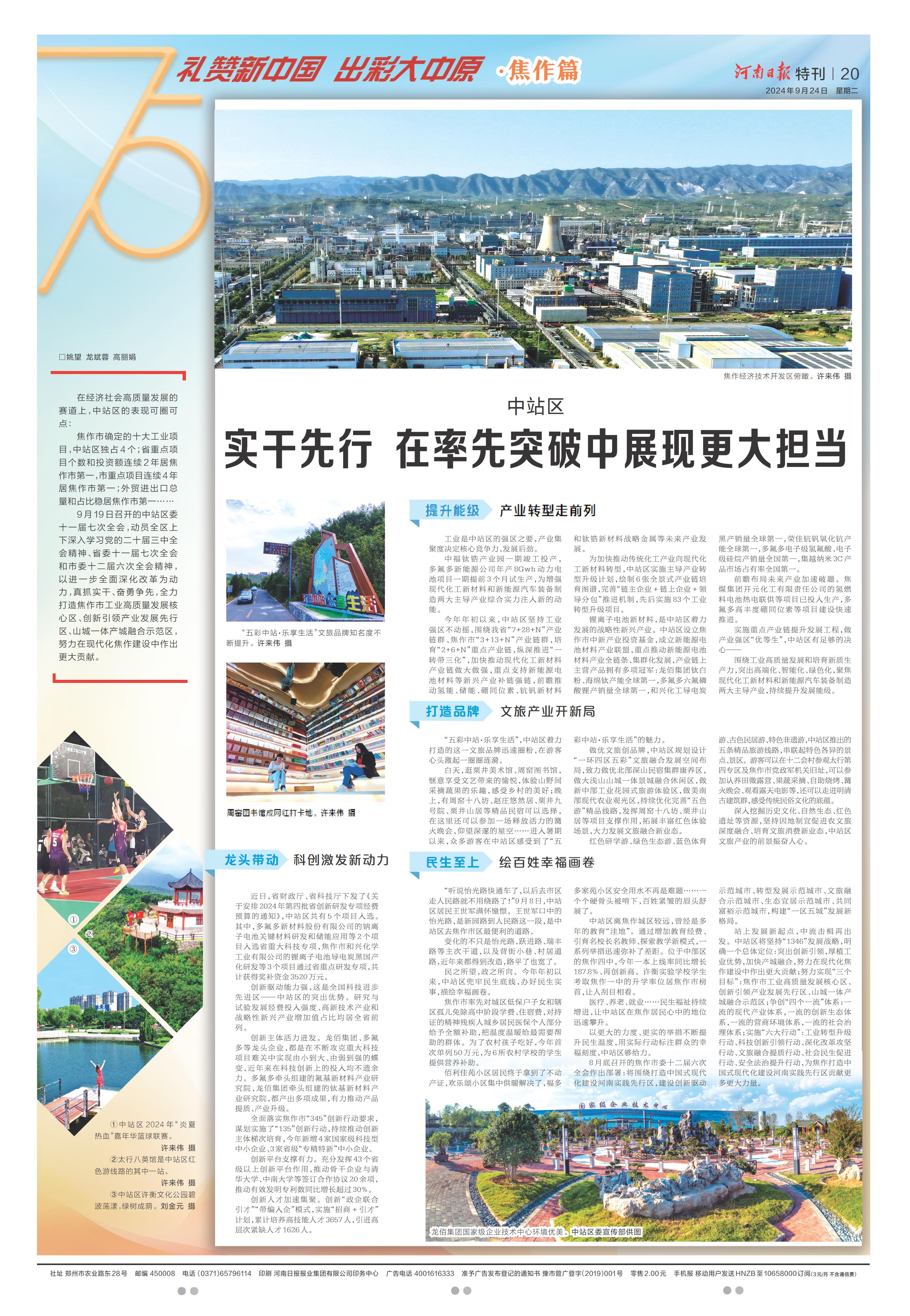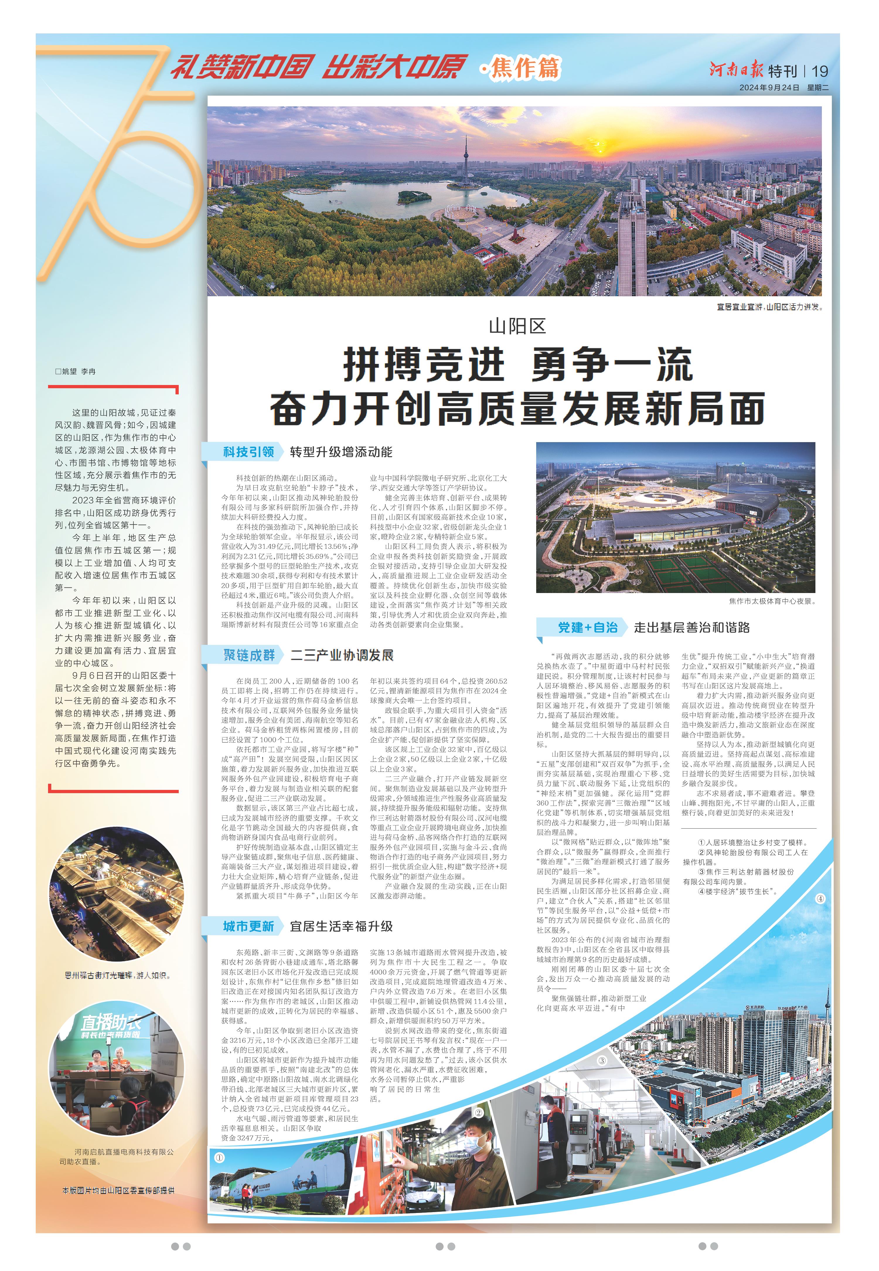 拼搏竞进 勇争一流 奋力开创高质量发展新局面(礼赞新中国 出彩大中原·焦作篇)