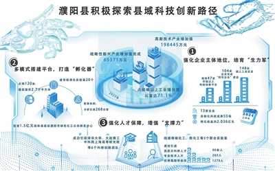 强化顶层设计,绘好“路线图”。濮阳县在全市率先成立科技创新委员会,出台《濮阳县支持科技创新平台建设的十条意见》等文件,以“真金白银”支持企业创新发展。高标准制定“十四五”科技创新专项规划,对加强科技创新体系建设等重大任务进行详细安排,并明确2025年濮阳县科技创新目标,描绘了科技创新发展蓝图。
