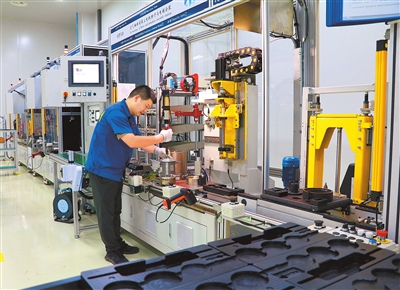 中原内配集团氢燃料电堆核心零部件产业园项目,技术人员在调试设备。董蕾 摄