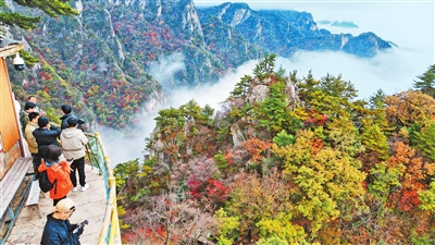 游客驻足观赏老界岭秋日美景。杨永青 摄