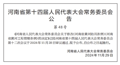 河南省第十四届人民代表大会常务委员会第十二次会议决定: