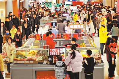 郑州市正弘城商场内,众多市民在采购年货,喜迎新春佳节的到来。 聂冬晗 摄