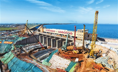 1月22日,白龟山水库除险加固工程施工现场一派繁忙。杨其格 摄