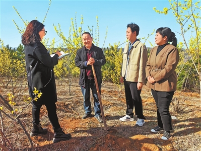 卢氏县纪检监察工作人员到文峪乡望家山连翘基地,了解村组集体“三资”管理工作。张海军 摄