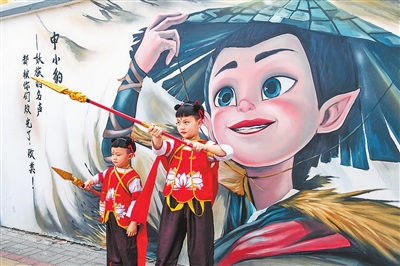 4月26日,博爱县清化镇街道,以电影《哪吒》为主题的墙绘亮相,原本斑驳老旧的墙面因别具一格的墙绘而焕发新生,吸引游客前来打卡。 程全 摄