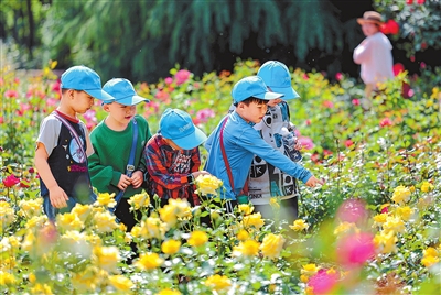 图① 4月25日,郑州市植物园月季花浪漫绽放,吸引市民前来观赏。 本报记者 邓放 摄