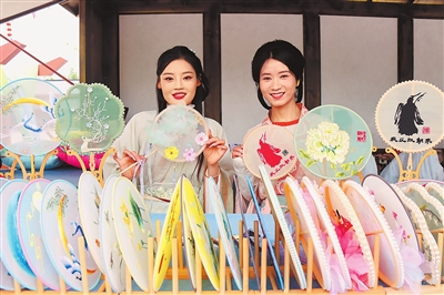 图② 4月24日,永城市芒砀山旅游区的工作人员身穿汉服展示文创产品。聂政 摄