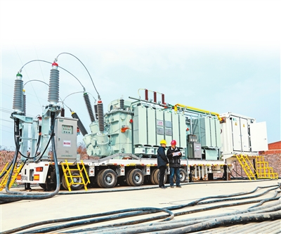 安阳供电公司以110千伏装配式移动变电站的快装快上模式,为周边区域电动重卡充电站及时提供电源保障。 张阳 摄