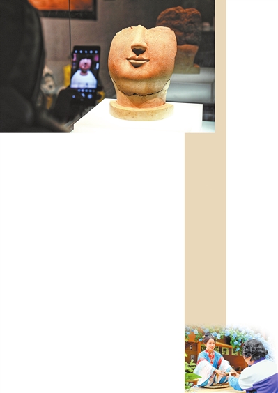 “你手上拿的这个小陶骰子,还有小陶牛,就是学生们做的,有意思吧?”董强峰笑着说。在一间不大的屋子里,学生们做的陶器小摆件和董强峰精心制作的佛像摆放在一起,佛像嘴角微微上扬,恰似跨越千年的相视一笑。