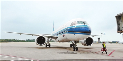 本报讯(记者 郭北晨)6月20日10时28分,由南航C919国产大飞机执飞的CZ3396广州—郑州航班,搭载154名旅客顺利抵达郑州机场,完成国产大飞机C919在郑州的商业首航,标志着郑州机场成为国产大飞机的又一通航点,也正式开启了南航C919投放“郑广快线”的常态化商业运营。