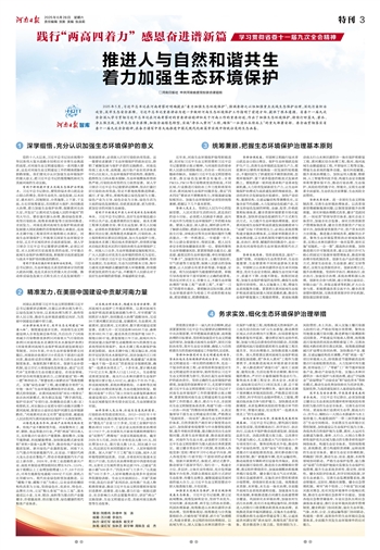 2025年5月,习近平总书记在河南考察时明确提出“着力加强生态环境保护”,强调要持之以恒加强重点流域生态保护治理,深化污染防治攻坚,筑牢生态安全屏障。习近平总书记重要讲话为进一步做好河南生态环境保护工作指明了前进方向、提供了根本遵循。省委十一届九次全会深入学习贯彻习近平总书记在河南考察时的重要讲话精神和关于河南工作的重要论述,作出了加强生态环境保护,持续打好蓝天、碧水、净土保卫战,筑牢生态安全屏障,加快全面绿色转型,实施“净水入黄河”工程,确保“一泓清水永续北上”的重大部署安排。要全面贯彻落实省委十一届九次全会精神,在奋力谱写中原大地推进中国式现代化新篇章实践中绘就壮美的生态画卷。