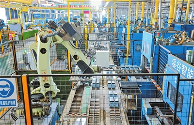 7月3日,在濮阳天能集团能源科技有限公司车间里,智能机器臂在生产线上作业。 本报记者 邓放 摄