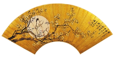 [清] 费以耕 张熊 《梅月嫦娥图》 扇面