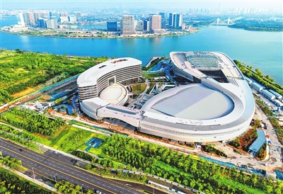 7月23日,郑州北龙湖国际文化交流中心项目已进入建设关键期。项目建成后,将进一步提升郑州的国际会展和高端会议承接能力,助力中原城市群对外开放和国际化发展。 本报记者 邓放 摄
