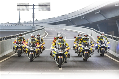 洛阳市公安局交警铁骑大队在火炬大桥巡逻。 洛阳市公安局供图