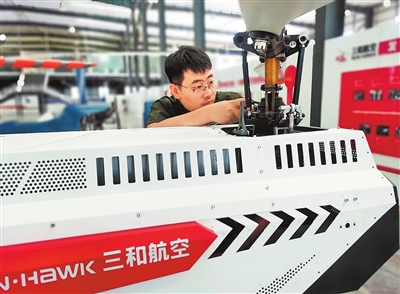 河南三和航空工业有限公司技术人员正在对工业级无人机进行测试。 郑州国家通航产业综合示范区供图