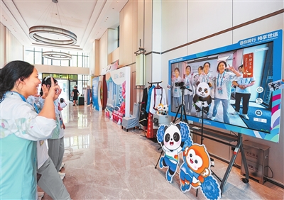 步入依托现有酒店设施布置的世运村,记者看到,中医理疗中心、特许商品零售店等一应俱全。在中医理疗中心,运动员可以体验推拿按摩等中医疗法。在传统文化体验区,运动员可以体验书法、武术、汉服及蜀绣、皮影等中国传统文化和非遗技艺。一旁,反兴奋剂教育拓展活动的工作人员和志愿者们也已准备就绪。整个世运会期间,成都世运村将为约7000名参赛者提供服务。