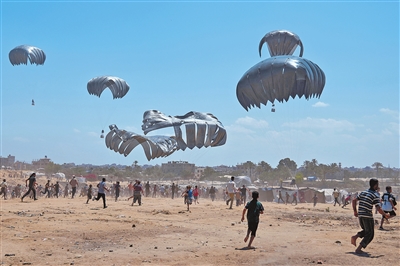 埃及军方3日也发表声明说,过去72小时,共出动9架军用运输机向加沙地带空投人道主义援助物资,数十吨粮食被空投到陆路难以抵达的区域。
