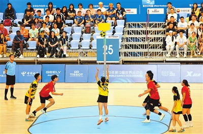 8月8日晚,中国荷球队与中国台北荷球队在成都龙泉中学体育馆进行首场比赛。 本报记者 邓放 摄