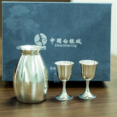 中国白银城展厅展出的白银器皿。
