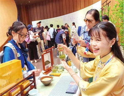 信阳毛尖茶制作技艺吸引海外游客参与。
