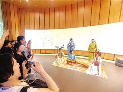 除了代表殷商文化的甲骨,我省还在有限的空间里精心安排,充分利用音画交融技术与非遗互动方式,呈现源自汉代的古乐器秀、博山炉展品,唐代的唐三彩,以及宋代钧瓷、汝瓷、木版年画等非遗技艺,让游客沉浸式感知河南在中国重要历史节点上的核心地位和丰富灿烂的文化资源。
